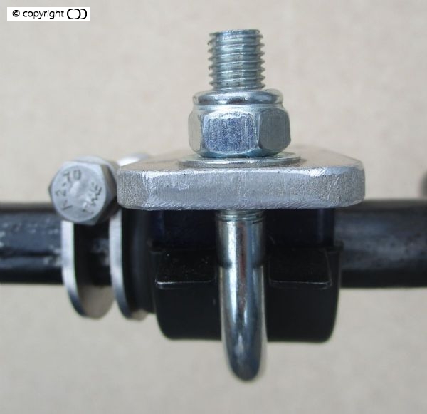 THE CLAMP, BOLT, NYLOC & WASHERS ARE ALL STAINLESS STEEL.
