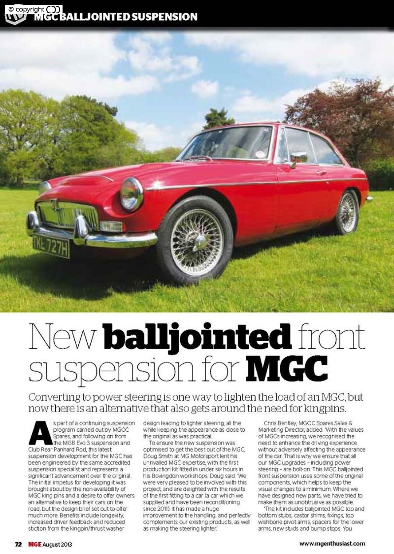 Following extensive development a ‘bolt on’ Ball Joint conversion is available for the MGC front suspension.