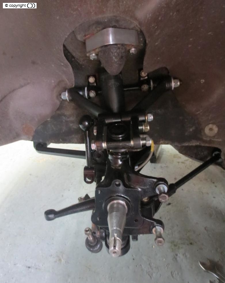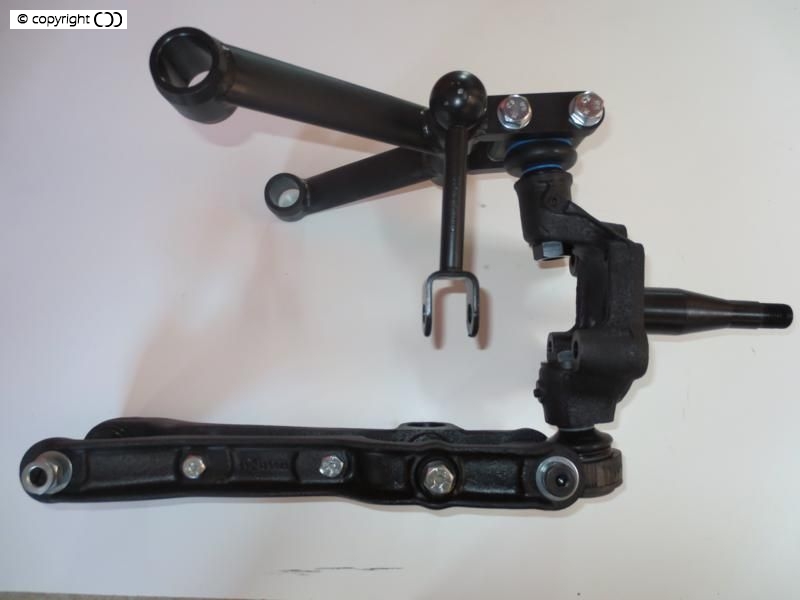 The kit represents a significant advantage over the original design and components by incorporating modern upper and lower ball joints in place of the conventional king pins and bushes. The use of ball joints makes the suspension movement more supple and free moving leading to enhanced driver feedback, reduce weighting up when cornering and offer full camber and caster adjustability, and because of the reduction in stiction they do in fact lighten the steering.
