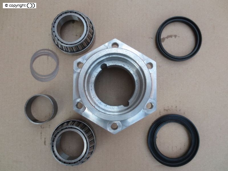 Genuine Timken / SKF taper roller bearings widely spaced, larger than standard and solidly shimmed.