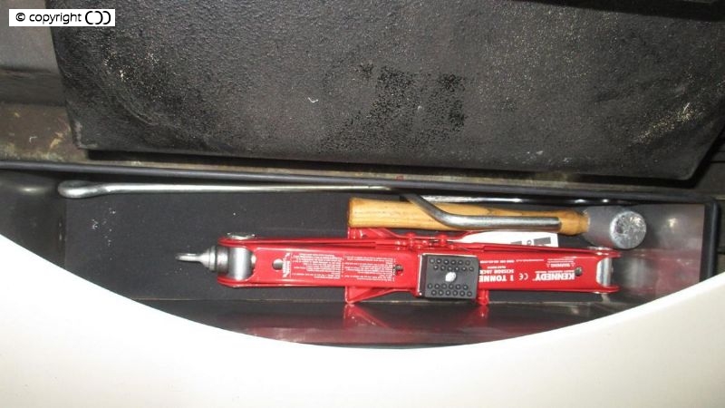 The toolbox sits neatly and securely hidden beneath the spare wheel (or spare wheel aperture cover).