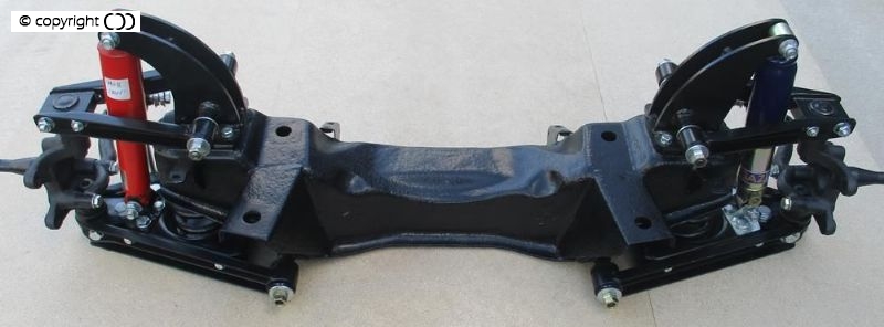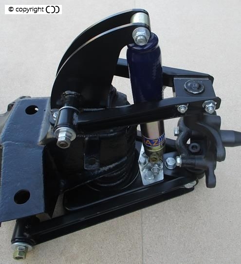 The ultimate front suspension upgrade: featuring double wishbone, independent coil spring and damper set up. And a ball jointed conversion of the original axle uprights.